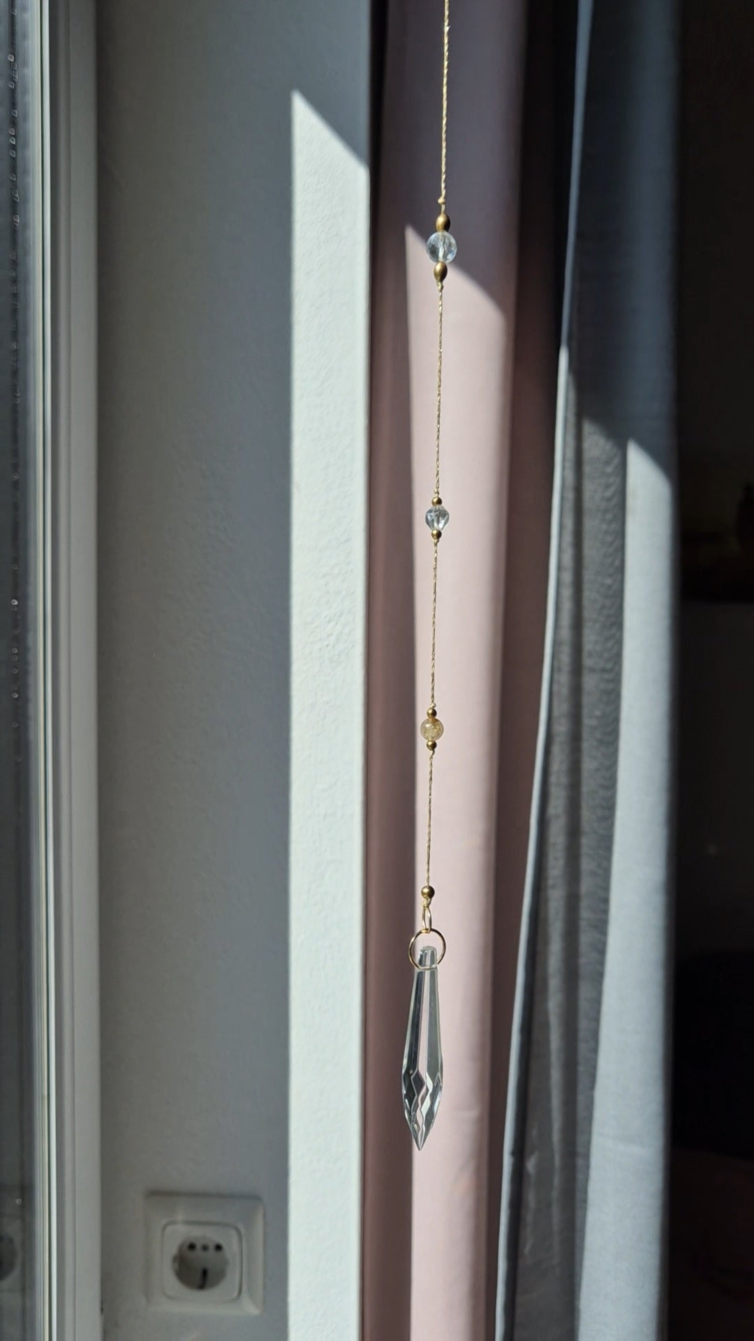 Eine Verlängerung zum Aufhängen, wie z.B. an einer Vorhangstange wird mitgeliefert!