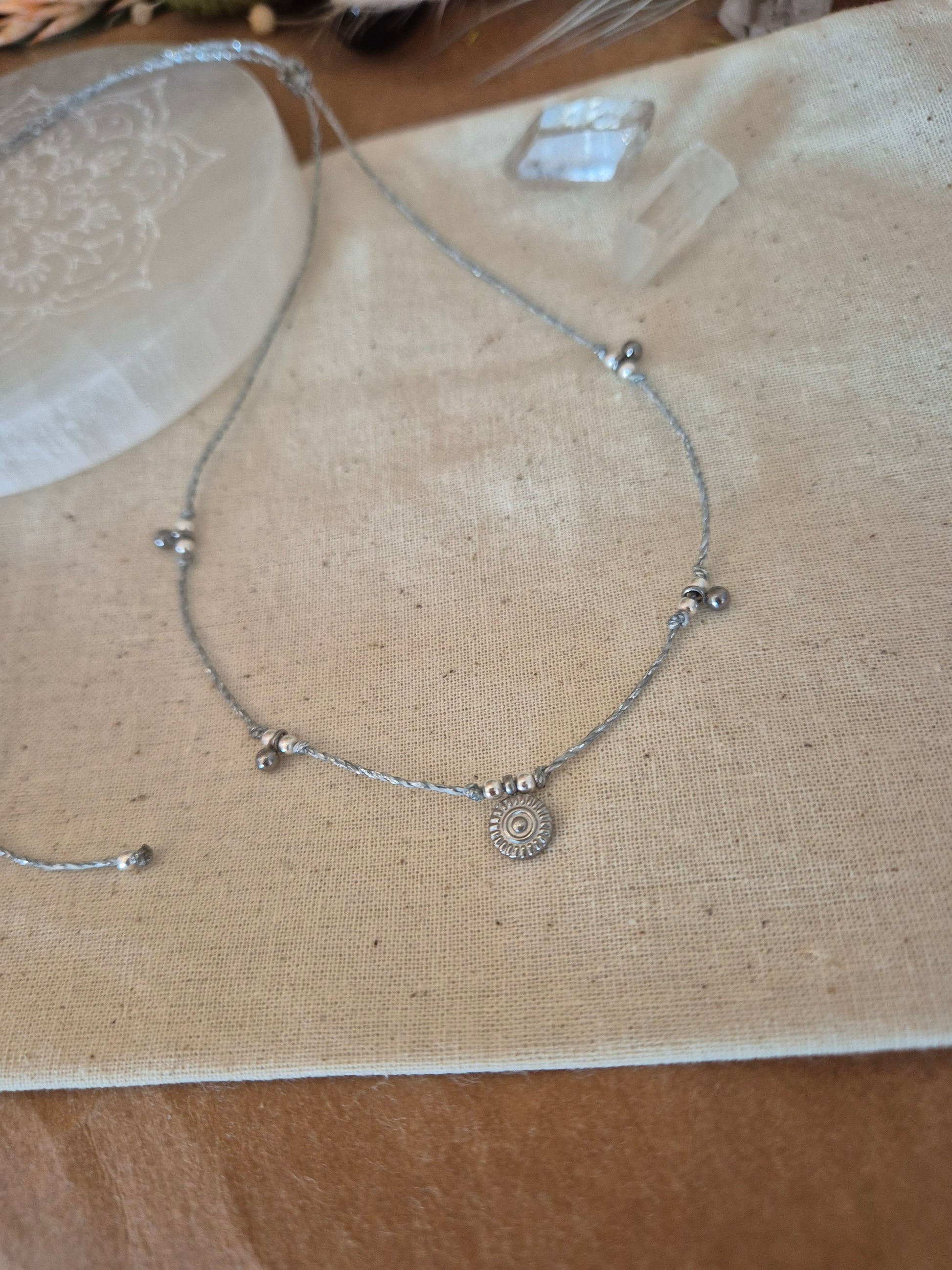 Alle Halsketten sind mit einem Schiebeknoten ausgestattet, den du zum Öffnen und Schließen einfach hin und her schieben kannst.