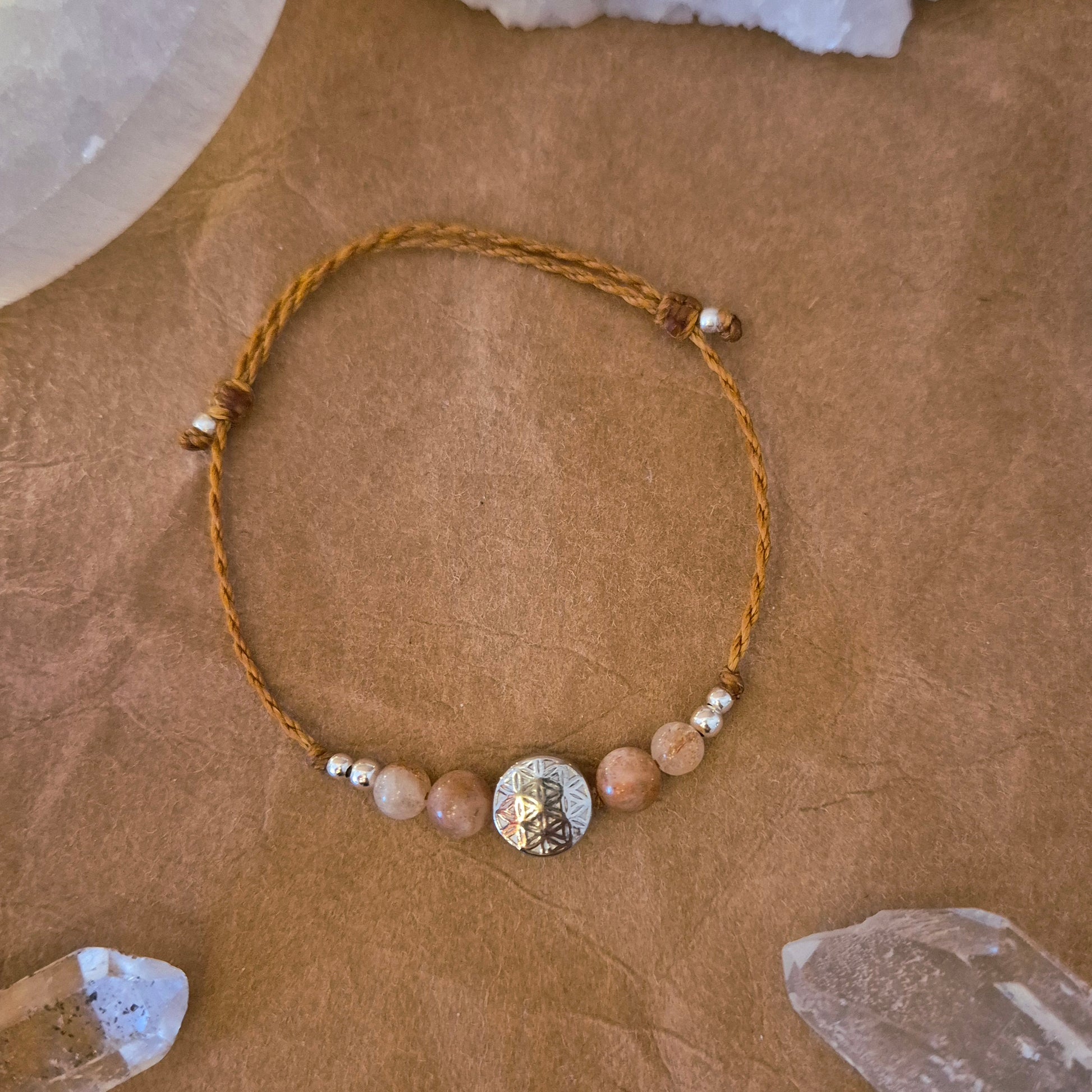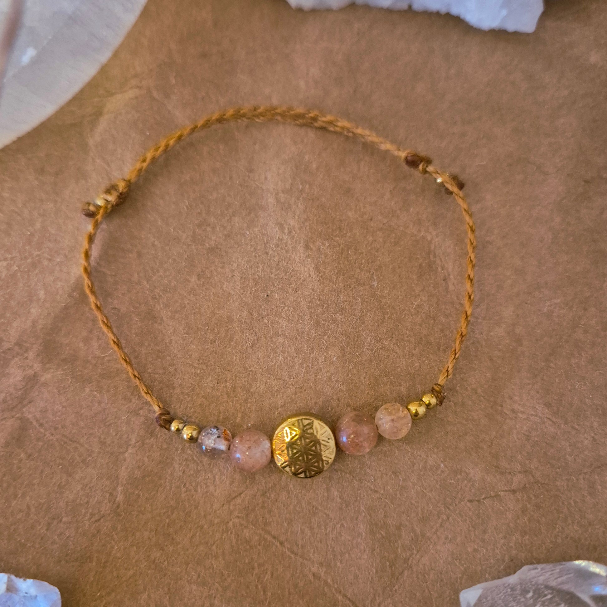 ✨ Materialien: echter Sonnenstein, Lebensblume Edelstahl 18k vergoldet