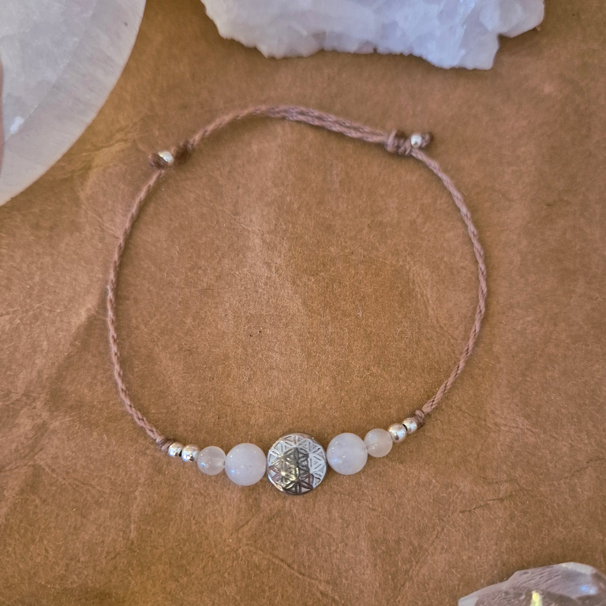Variante 1:🌕 Lebensblume & Weißer Mondstein – Intuition & Weiblichkeit