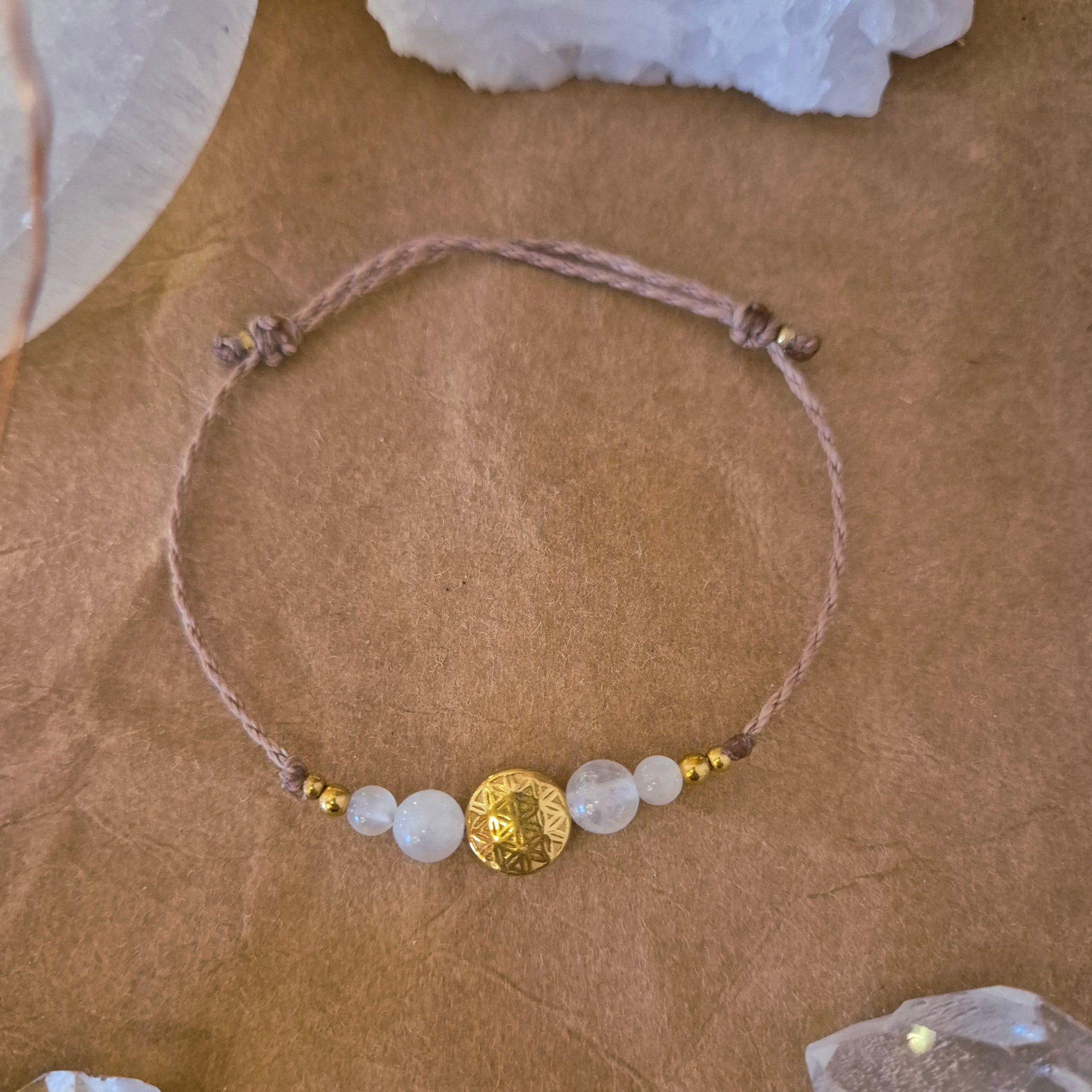 ✨ Materialien: echter weißer Mondstein, Lebensblume Edelstahl 18k vergoldet